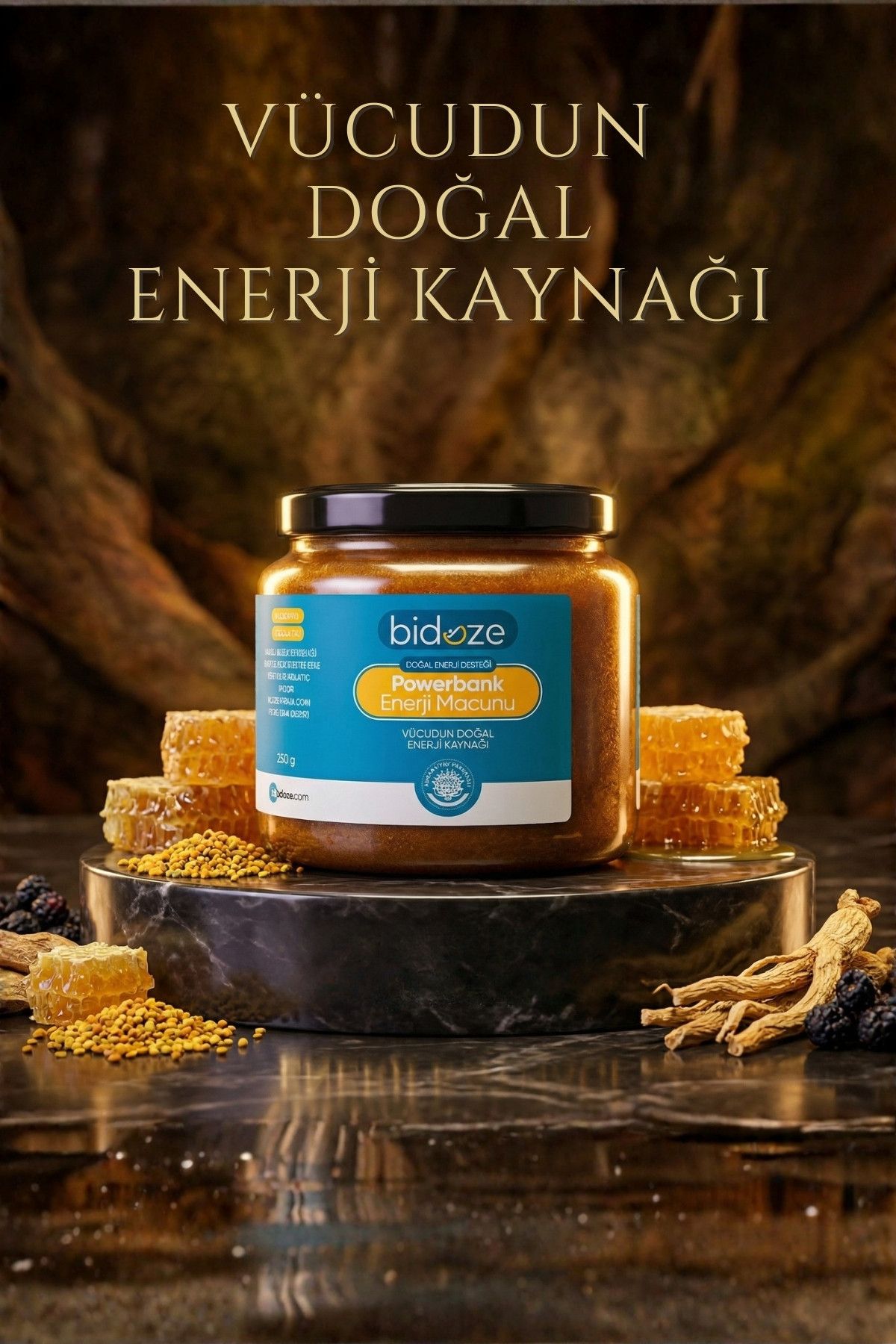 Bidoze Powerbank Enerji Macunu; doğanın en güçlü enerji kaynakları olan arı ürünleri ve şifalı bitkilerin, bilimsel normlarda eşsiz bir uyumla bir araya getirildiği %100 doğal bir gıda takviyesidir. İsminden de anlaşılacağı üzere, vücudunuzun ihtiyaç duyduğu enerjiyi depolar ve gün boyu zinde kalmanızı sağlar.